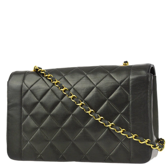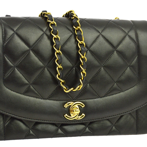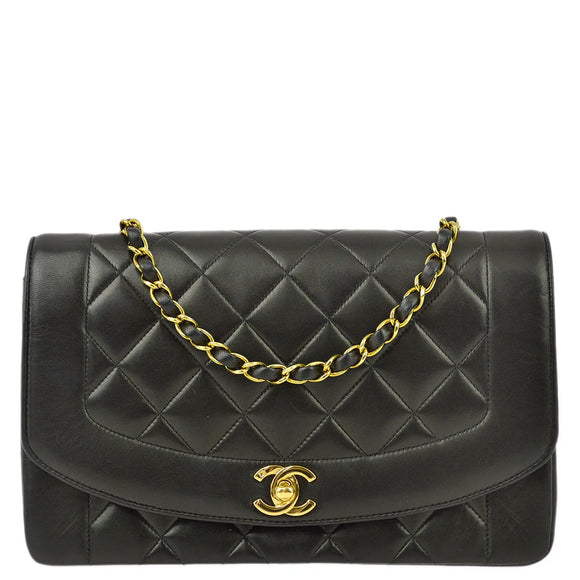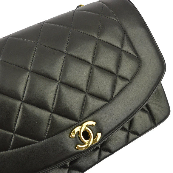 Chanel 1991-1994 Black Lambskin Medium Diana Shoulder Bag