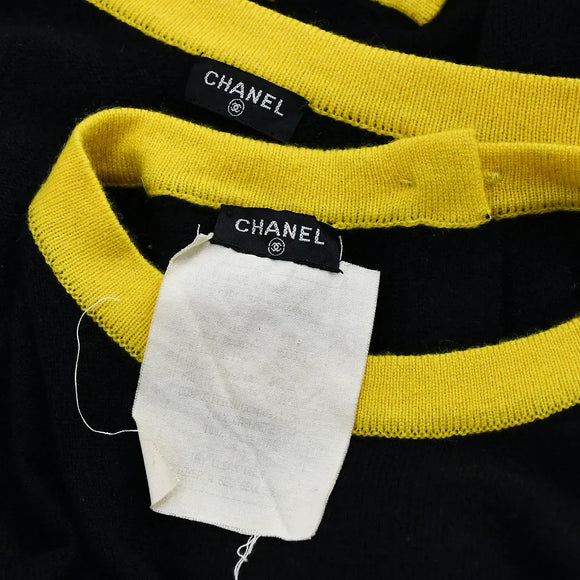 Chanel Set Cardigan Short Sleeve Top Black 94A #36
