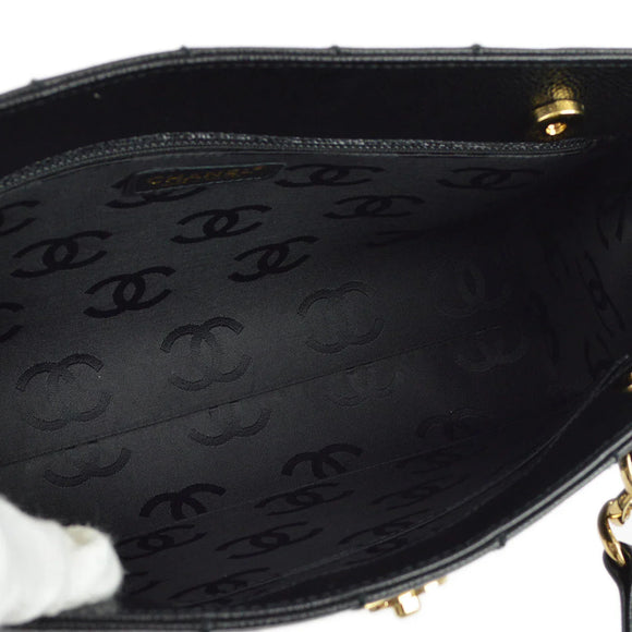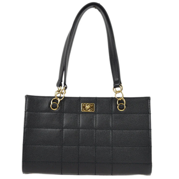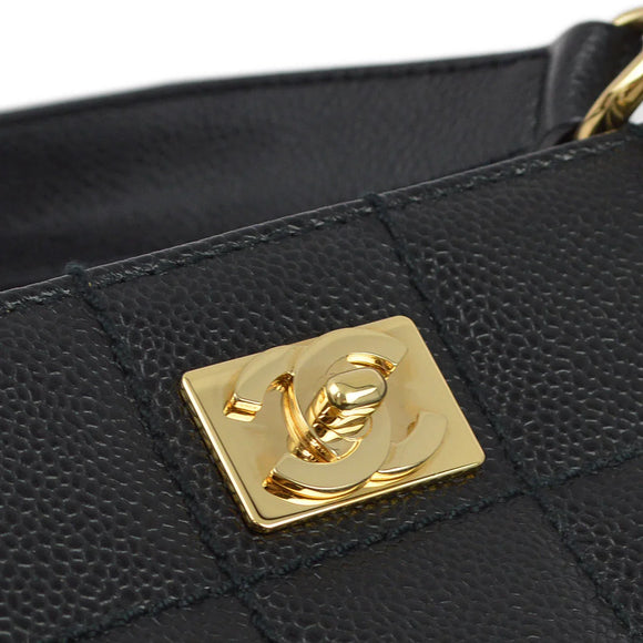 Chanel 2001-2003 Black Caviar Wild Stitch Choco Bar Chain Handbag