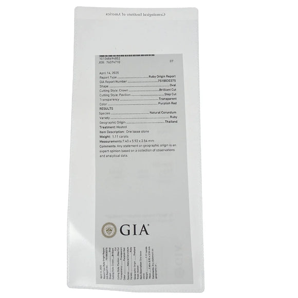 | Carat | Ruby: 1.11 ct Diamond: 0.45 ct |