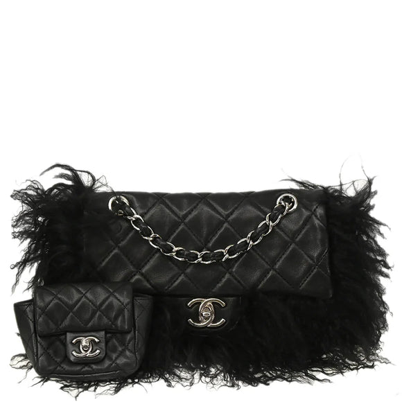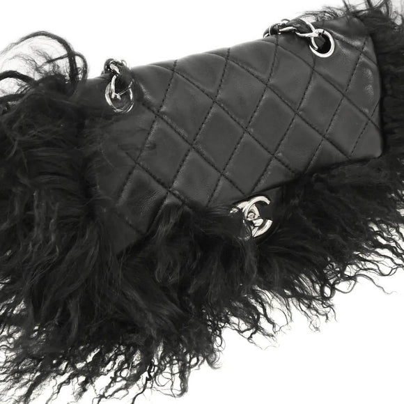 Chanel 2008-2009 Black Lambskin Fur Shoulder Bag