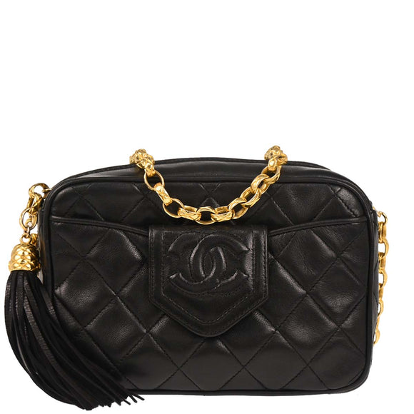 Chanel 1989-1991 Black Lambskin Camera Bag Mini