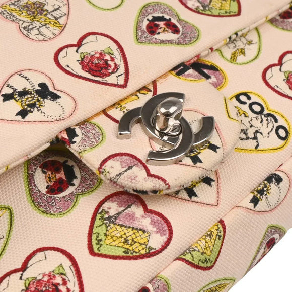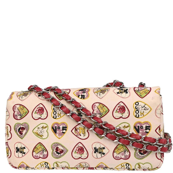 Chanel 2005-2006 Pink Canvas Valentine Chain Shoulder Bag