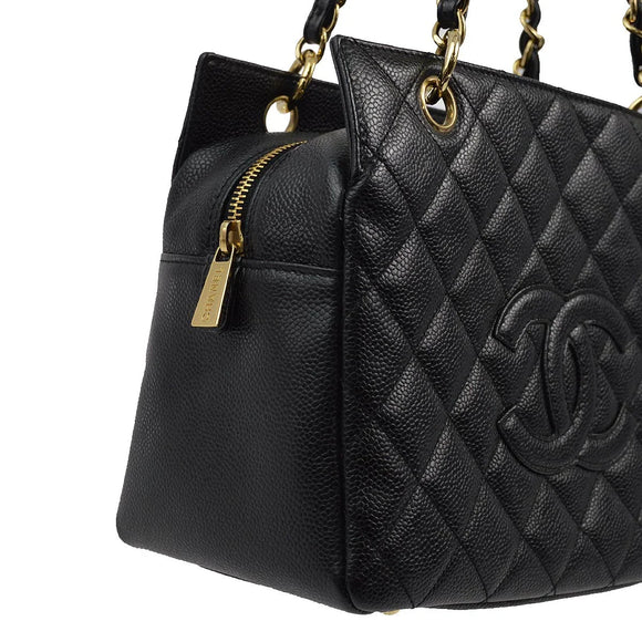 Chanel 2001-2003 Black Caviar Petite Timeless Tote PTT Chain Handbag