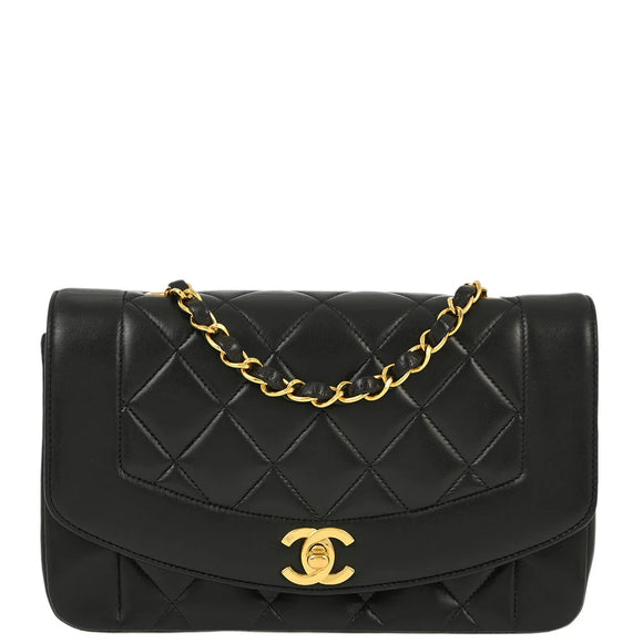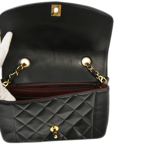 Chanel 1994-1996 Black Lambskin Small Diana Shoulder Bag