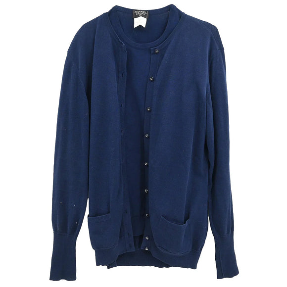 Chanel 1996 Ensemble Cardigan Top Navy #44