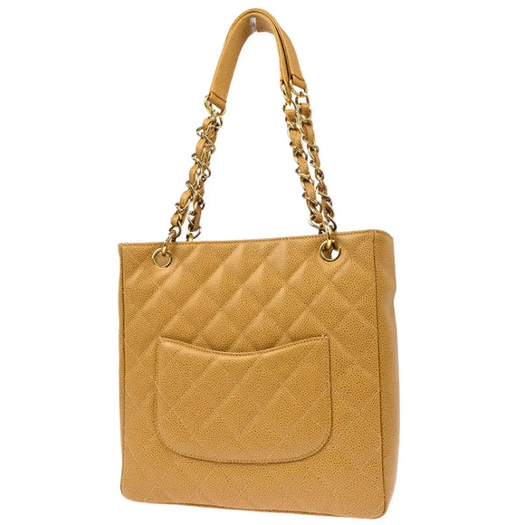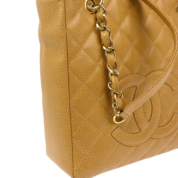 Chanel 2003-2004 Beige Caviar Petite Shopping Tote PST Chain Handbag