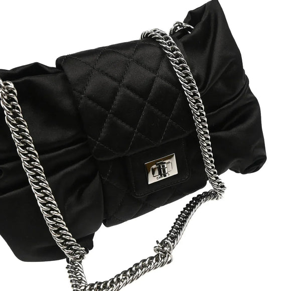 Chanel 2006-2008 Black Satin Bow Shoulder Bag