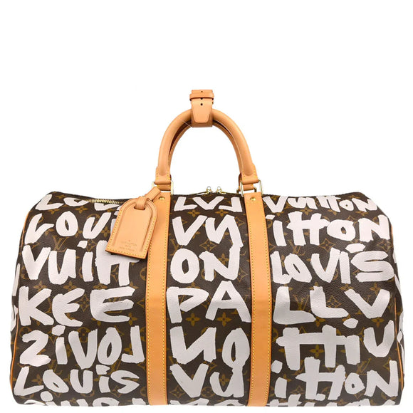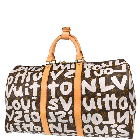 Louis Vuitton 2001 White Monogram Graffiti Keepall 50 Duffle Bag M92197