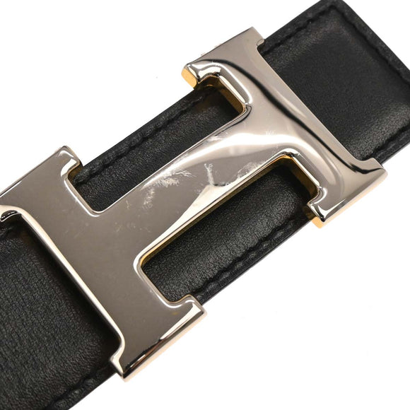 Hermes Black Gold Box Calf Constance Reversible Belt #65 Small Good