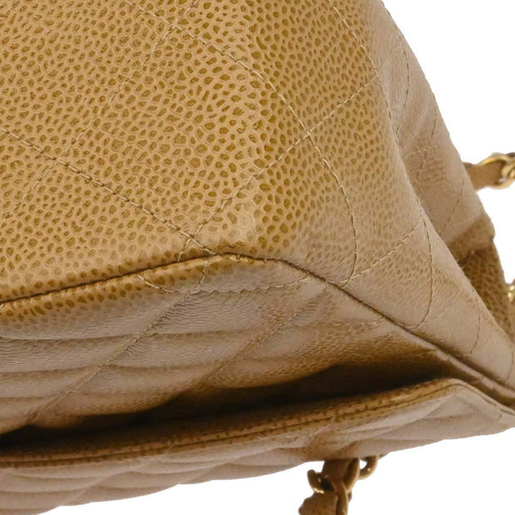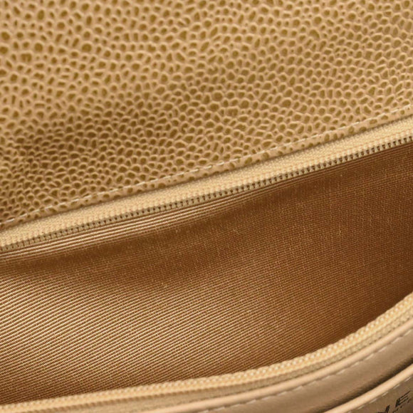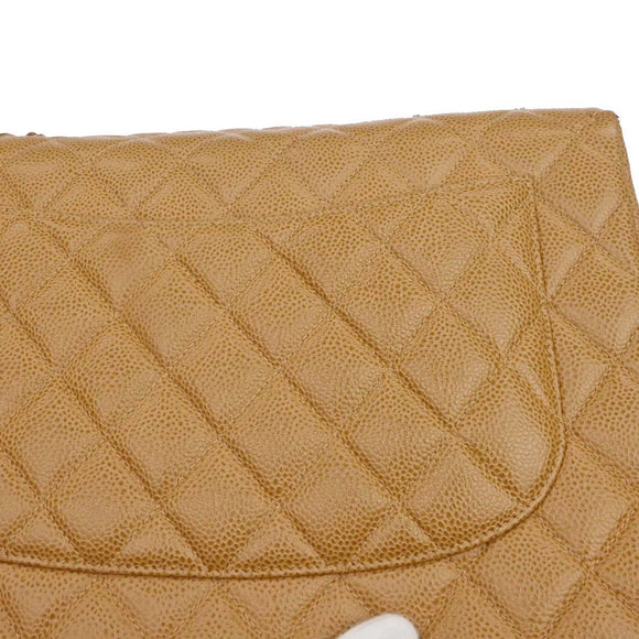 Chanel 2000-2002 Beige Caviar Skin Jumbo Classic Flap Shoulder Bag