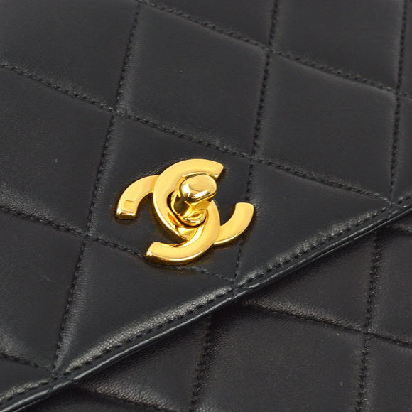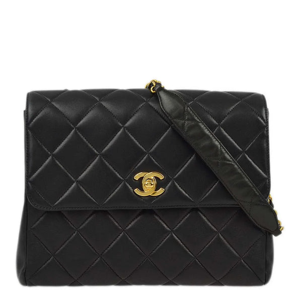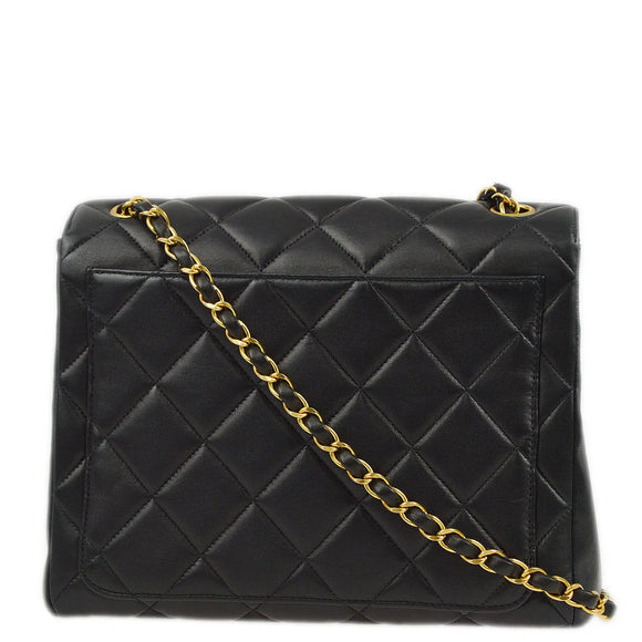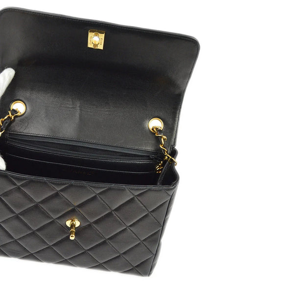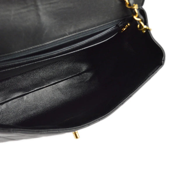 Chanel 1996-1997 Black Lambskin Straight Flap Chain Shoulder Bag