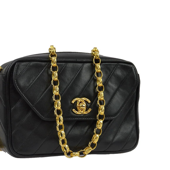 Chanel 1991-1994 Black Lambskin Camera Bag Mini