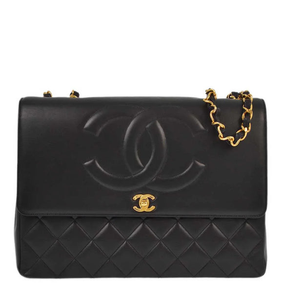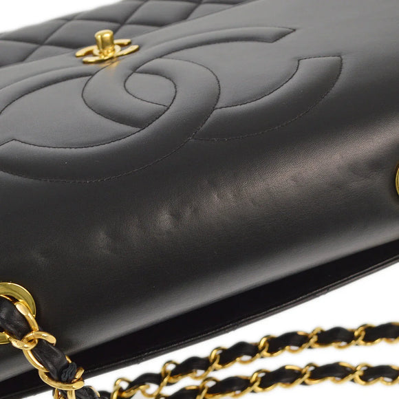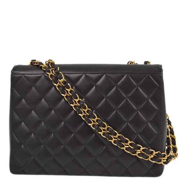 Chanel * 1991-1994 Black Lambskin Classic Flap Maxi Chain Shoulder Bag