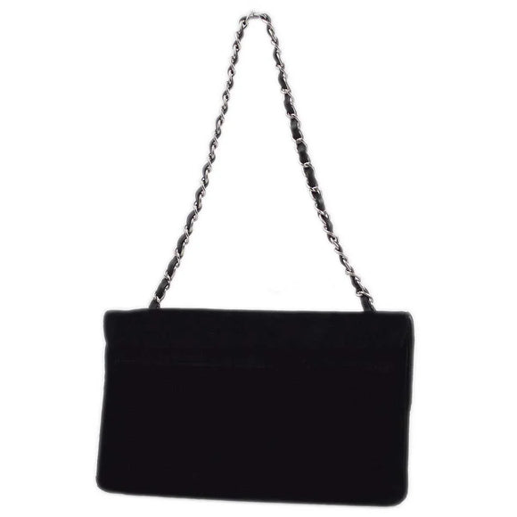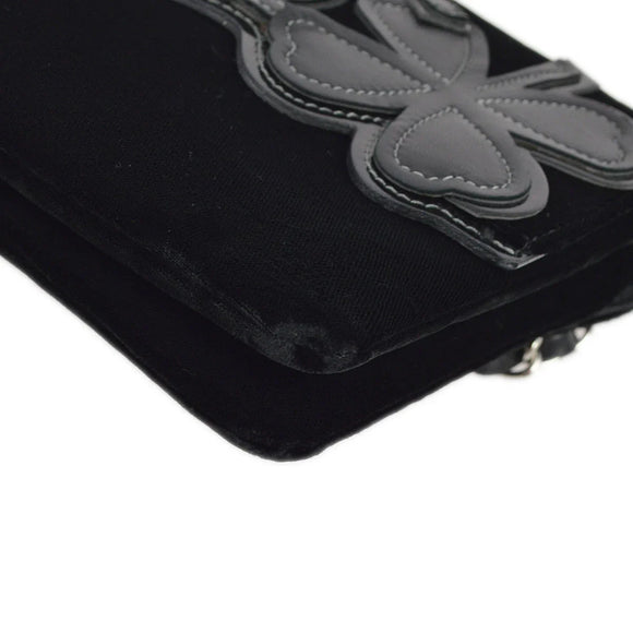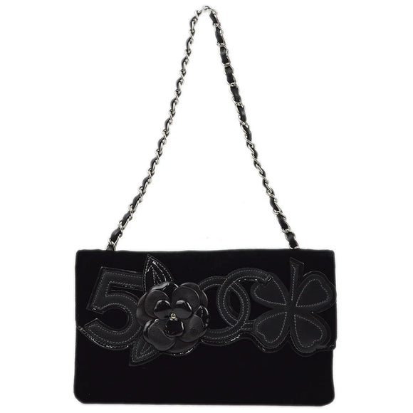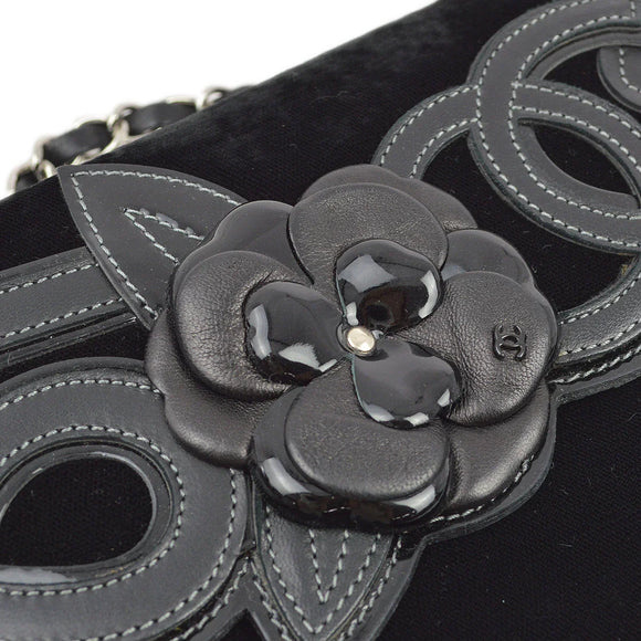 Chanel 2005-2006 Black Velvet Camelia Single Chain Shoulder Bag
