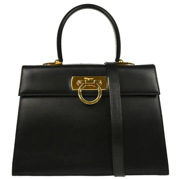 Salvatore Ferragamo Black Leather Gancini 2way Handbag