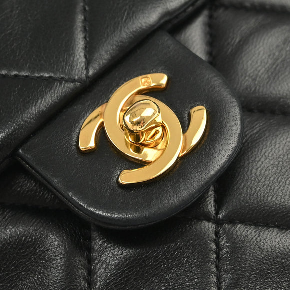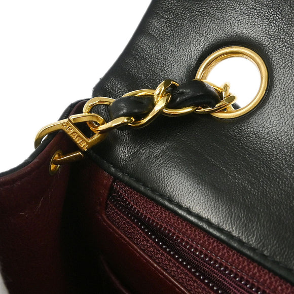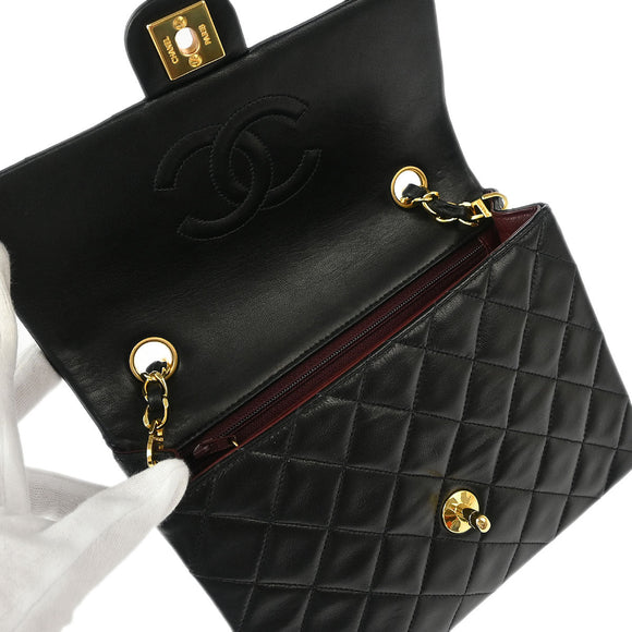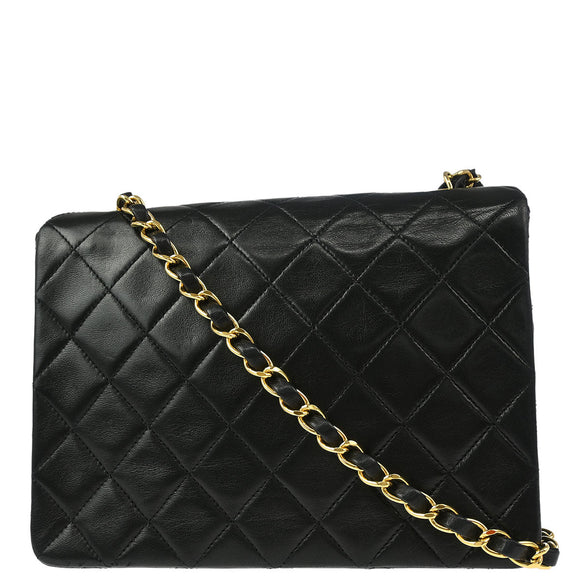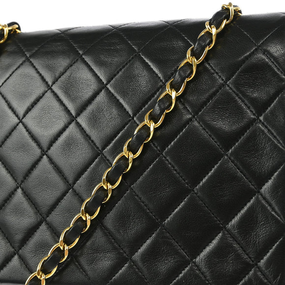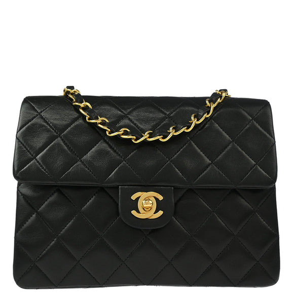 Chanel 1991-1994 Black Lambskin Classic Square Flap Shoulder Bag