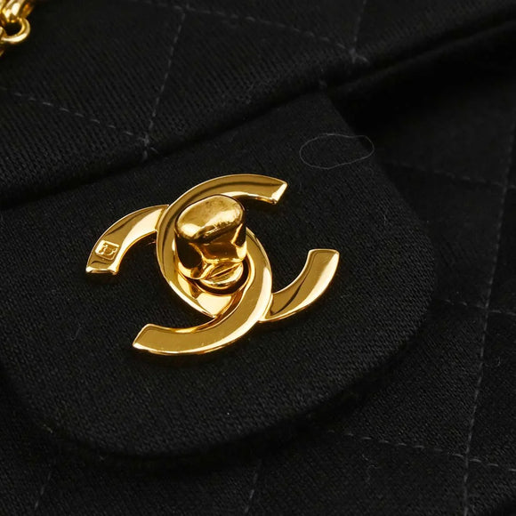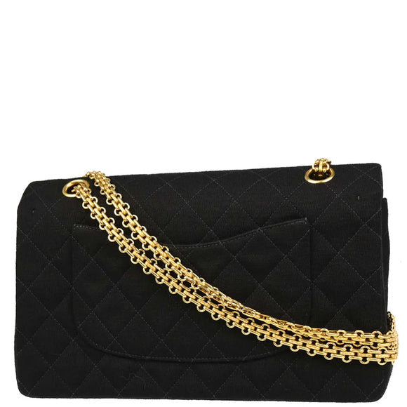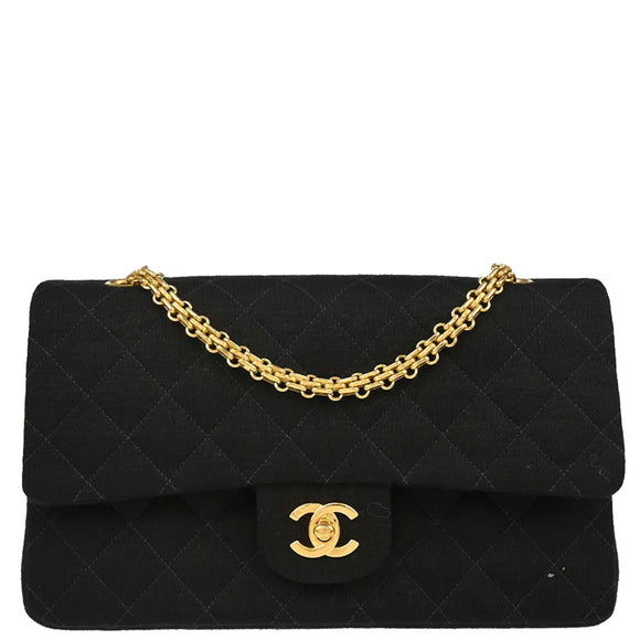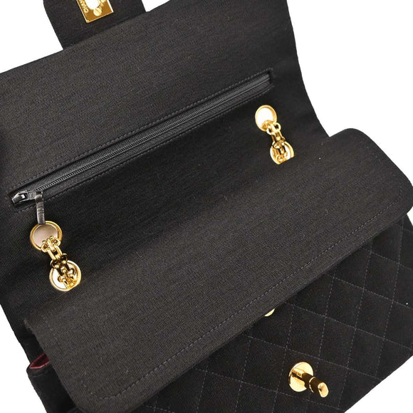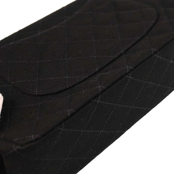 Chanel 1996-1997 Black Cotton Medium Classic Double Flap Shoulder Bag
