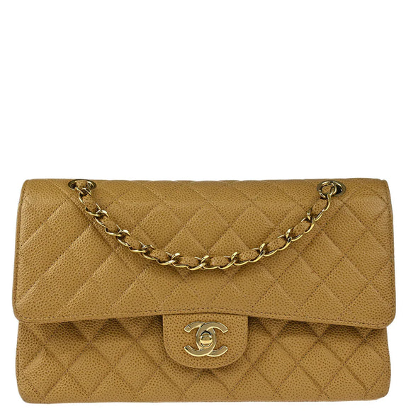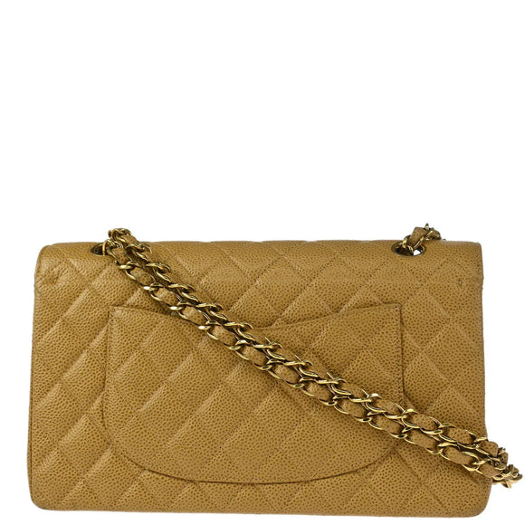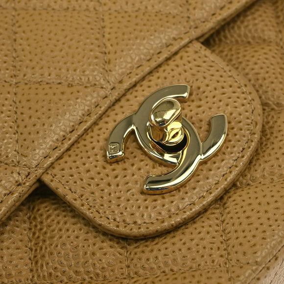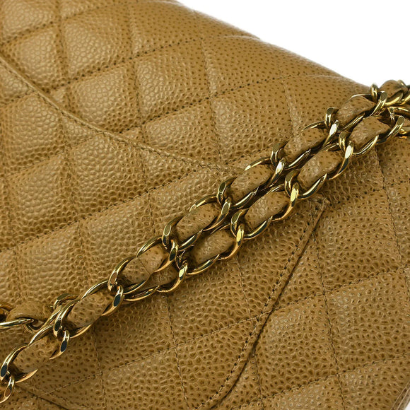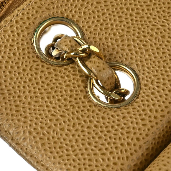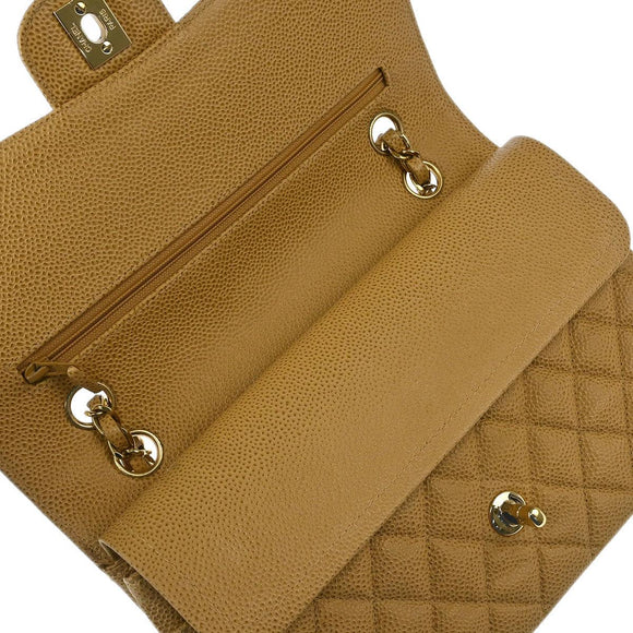 Chanel 2002-2003 Beige Caviar Medium Classic Double Flap Shoulder Bag