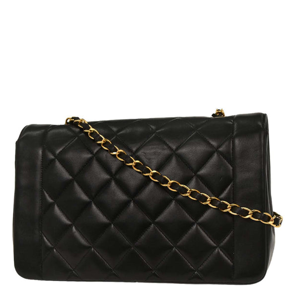Chanel 1991-1994 Black Lambskin Medium Diana Shoulder Bag
