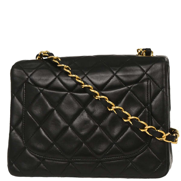Chanel Black Lambskin Mini Classic Square Flap Shoulder Bag