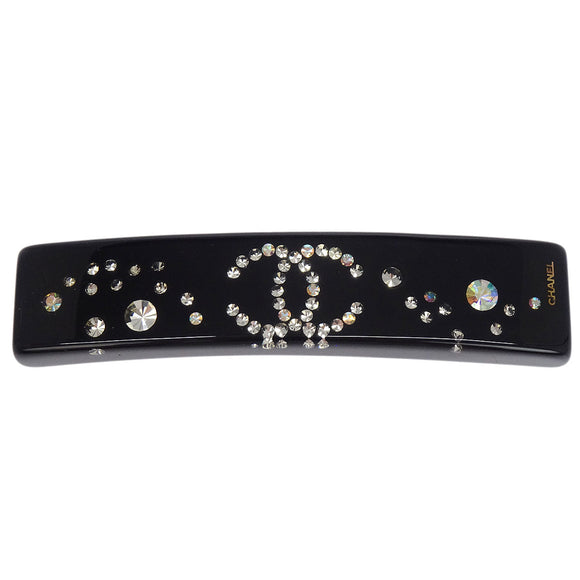 Chanel Hair Clip Hairpin Barrette CC Rhinestone Black 03A