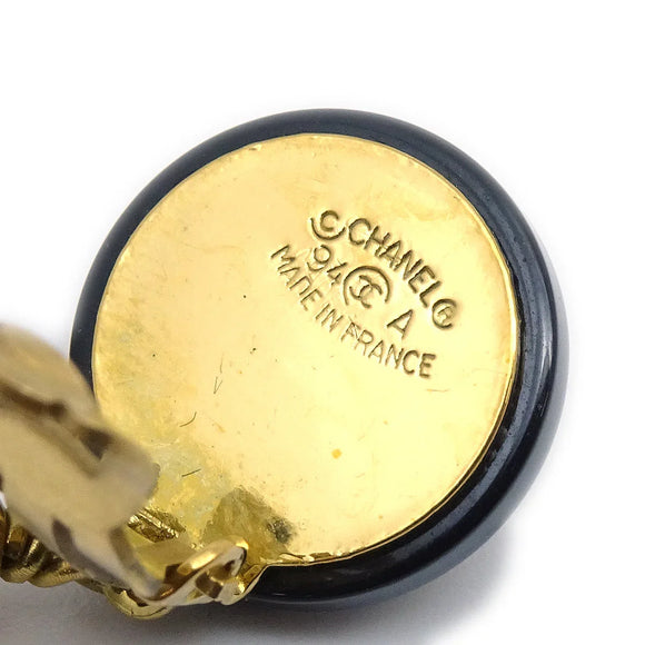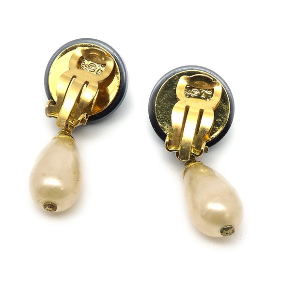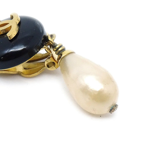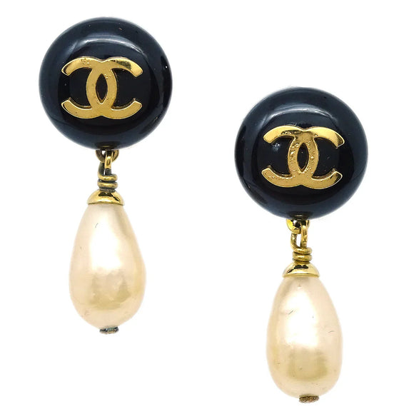 Chanel 1994 CC Black & Faux Teardrop Pearl Dangle Earrings