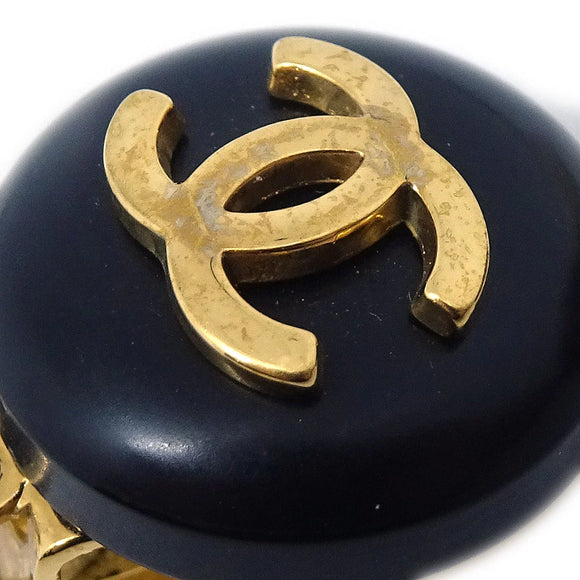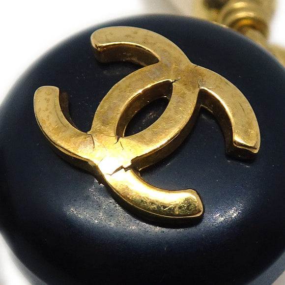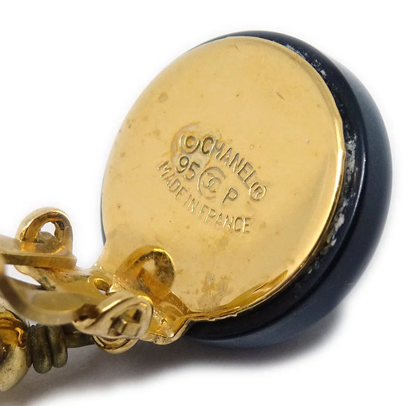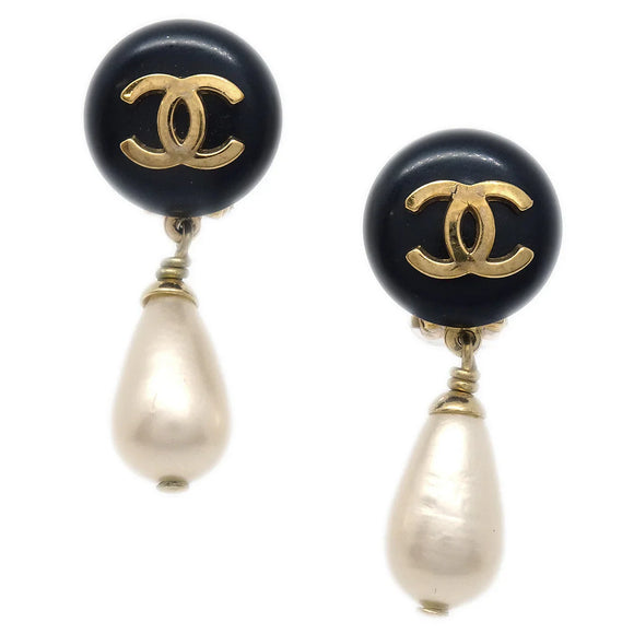 Chanel Artificial Pearl Dangle Earrings Clip-On Black 95P