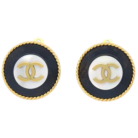 Chanel Mother of Pearl Rope Edge Earrings Clip-On 95P