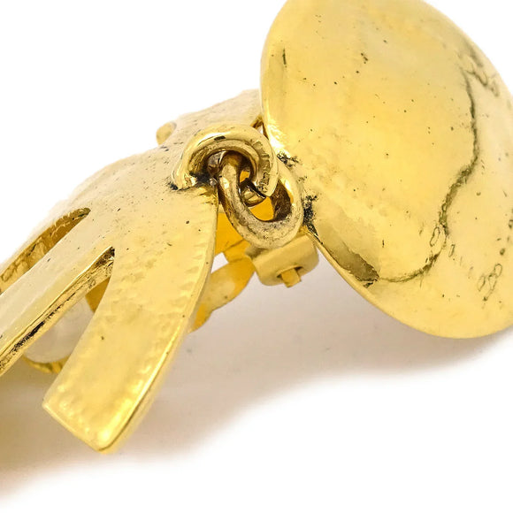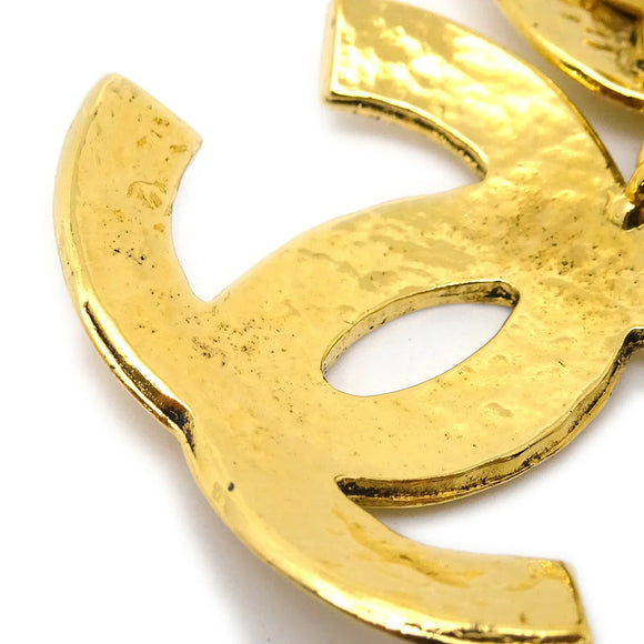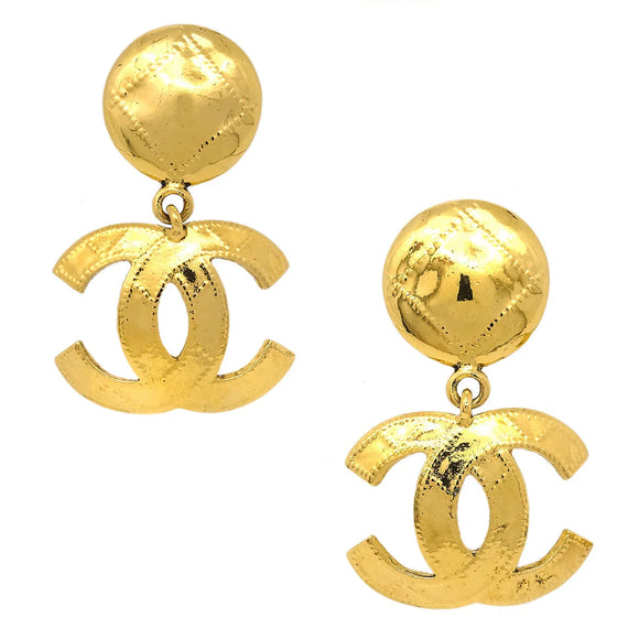Chanel 1994 Quilted CC Dangle Earrings Clip-On Gold Small