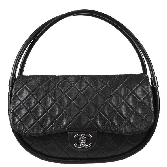 Chanel 2013-2014 Black Lambskin Large Hula Hoop Handbag