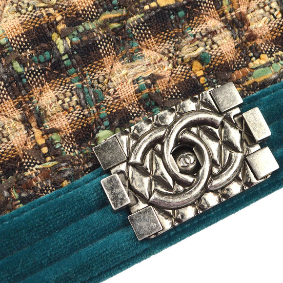 | Boy Chanel Blue Tweed Velvet Small Double Chain Shoulder Bag | |