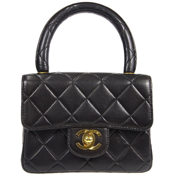 Chanel 1994 Black Lambskin Micro Classic Flap Handbag