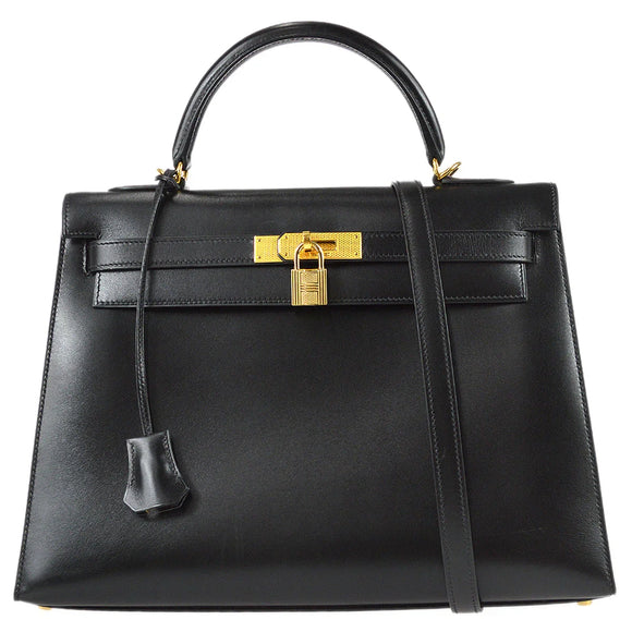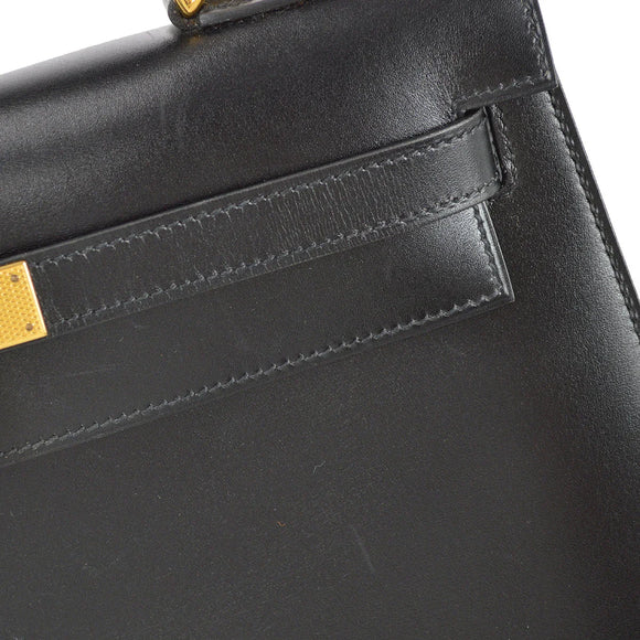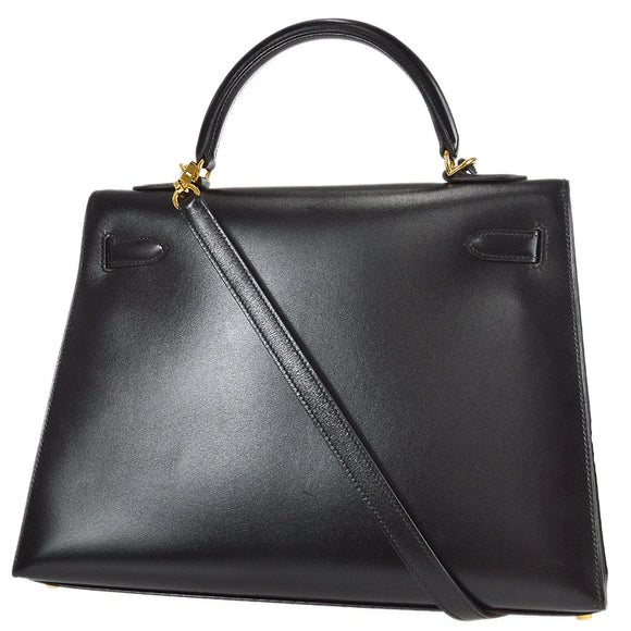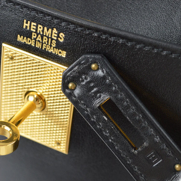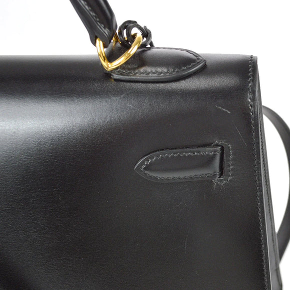 Hermes * 2004 Kelly 32 Guilloche Sellier Black Box Calf