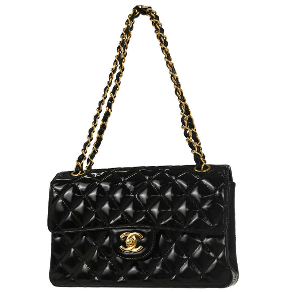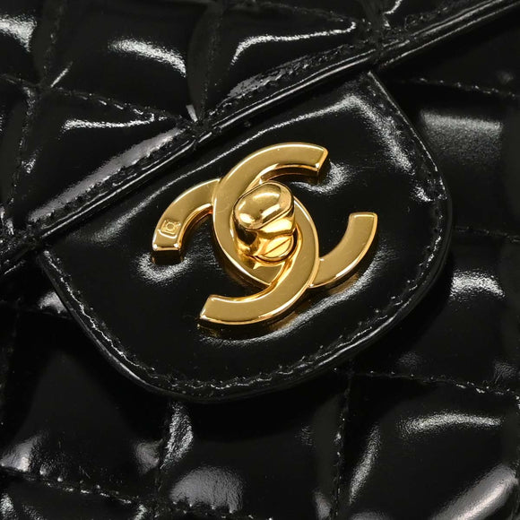Chanel 1996-1997 Black Patent Leather Double Sided Flap Shoulder Bag