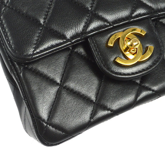 Chanel 1994经典襟翼手提包微型黑色小羊