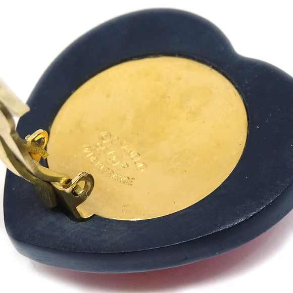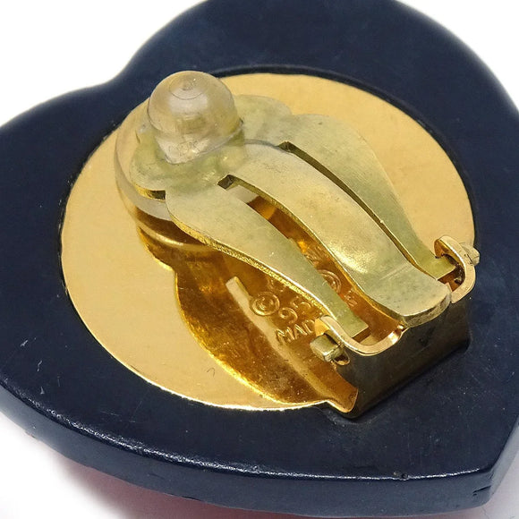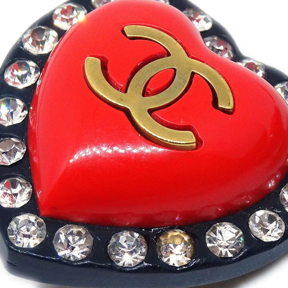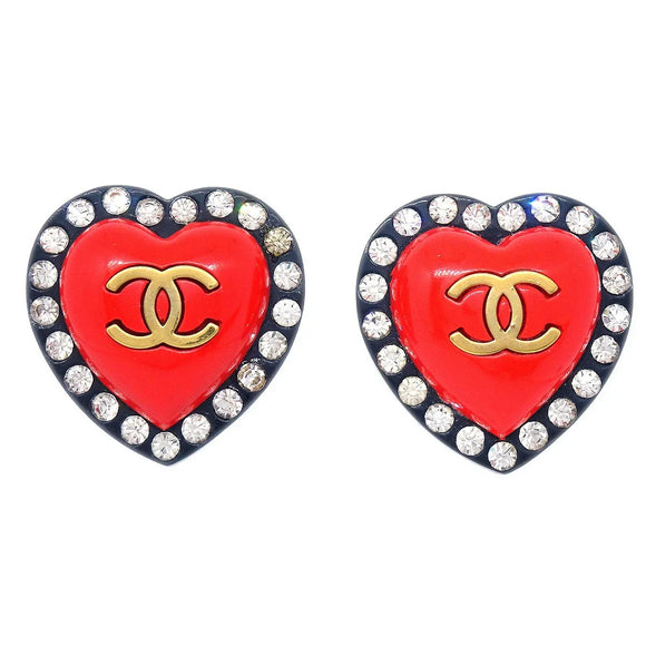 Chanel Heart Rhinestone耳环夹住红色黑色95p