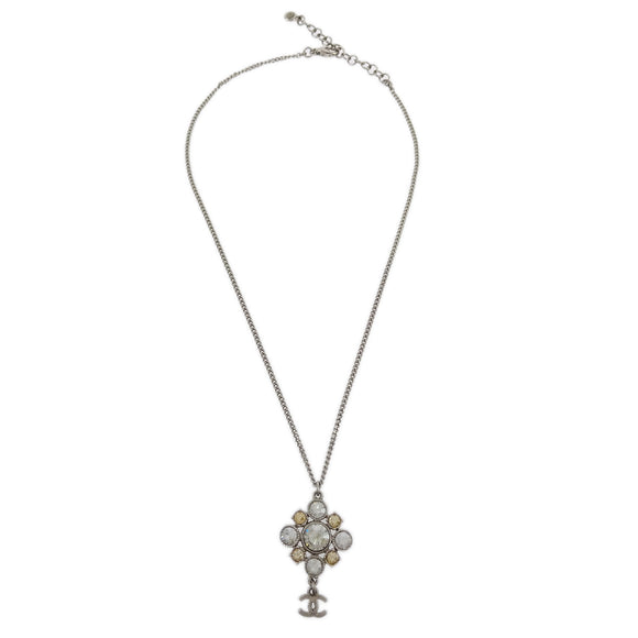 Chanel 2010 Silver Necklace Pendant Rhinestone 10V