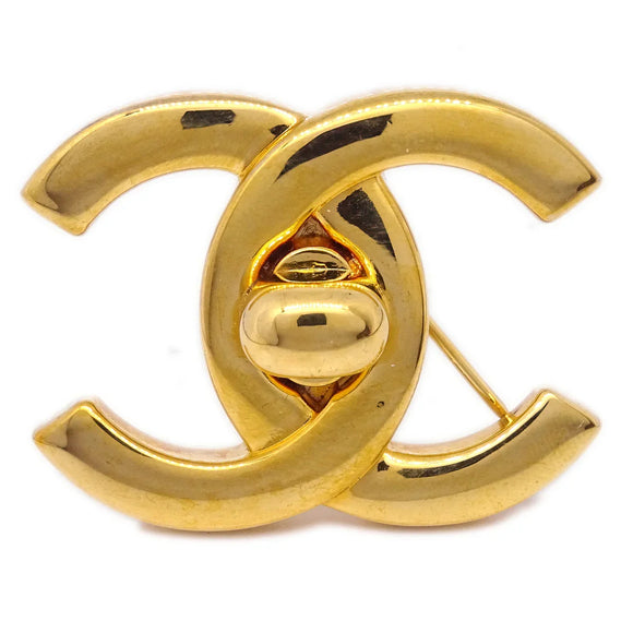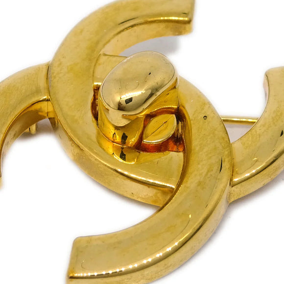Chanel Turnlock Brooch Pin Gold Large 96P