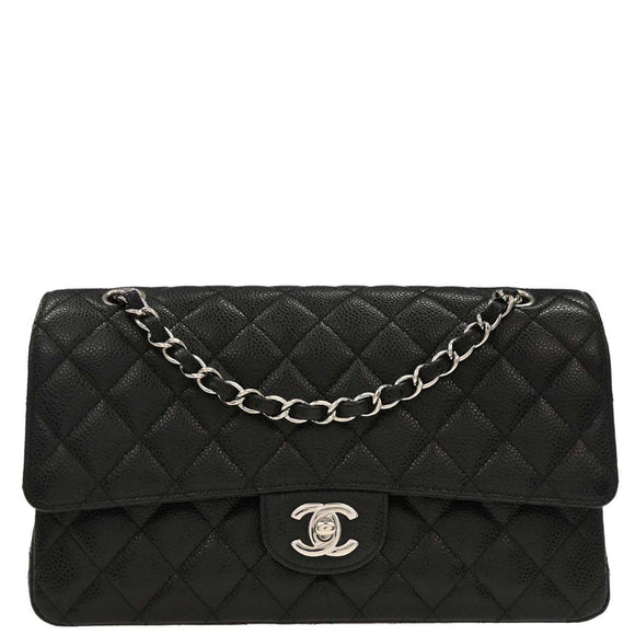 Chanel 2018 Black Caviar Medium Classic Double Flap Shoulder Bag