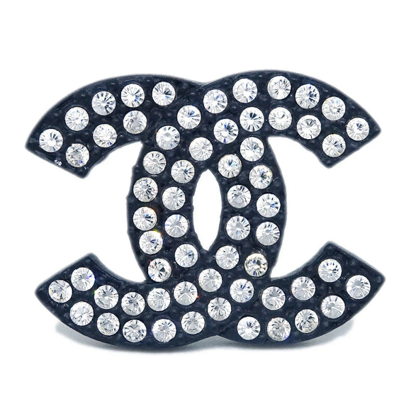 Chanel CC Brooch Pin Rhinestone Black 02A