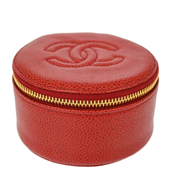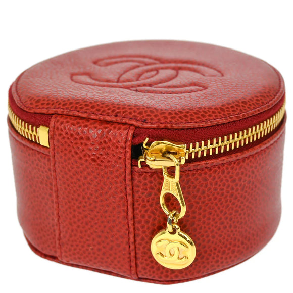 Chanel 1991-1994 Red Caviar Jewelry Case Pouch