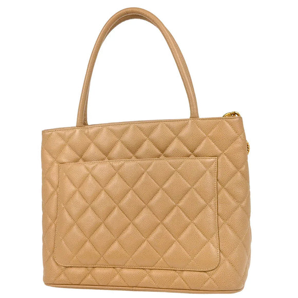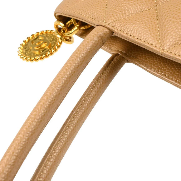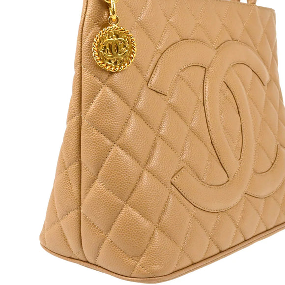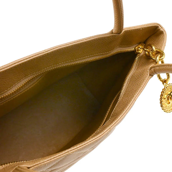 Chanel Beige Caviar Medallion Tote Handbag