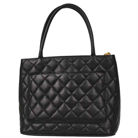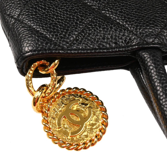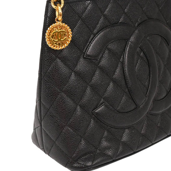 Chanel 2000-2001 Black Caviar Medallion Tote Handbag