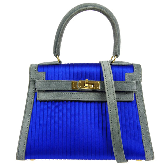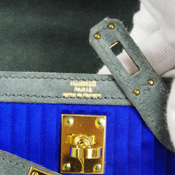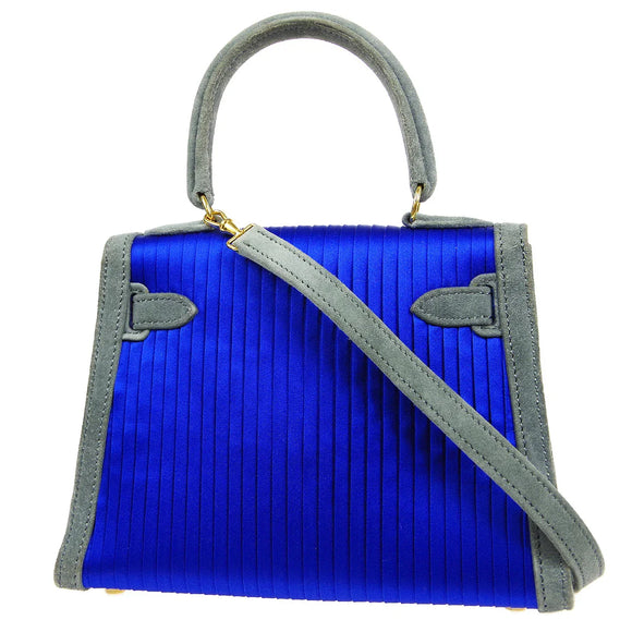| 爱马仕Kelly 20 Sellier 2way肩部手提包褶皱蓝色灰色Doblis丝绸 | |