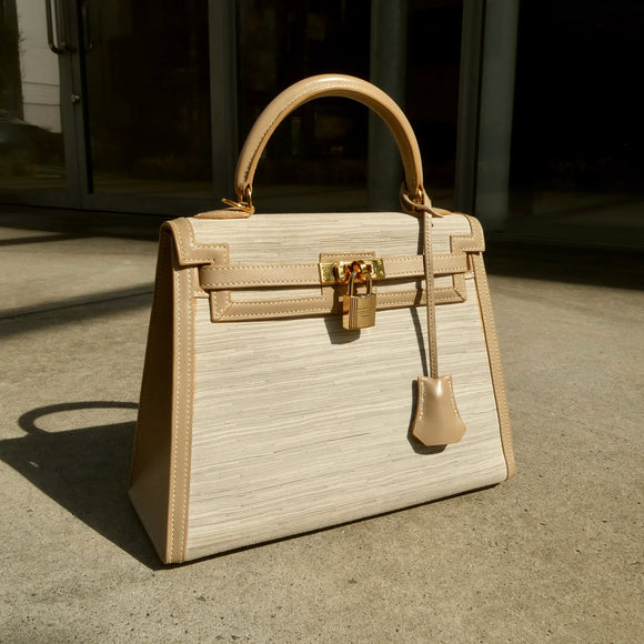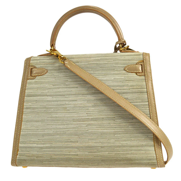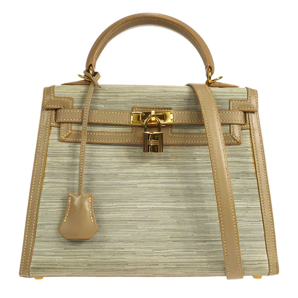 爱马仕凯利25 Sellier 2way肩部手袋米色颤音盒小牛