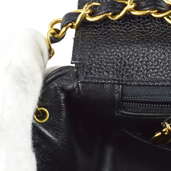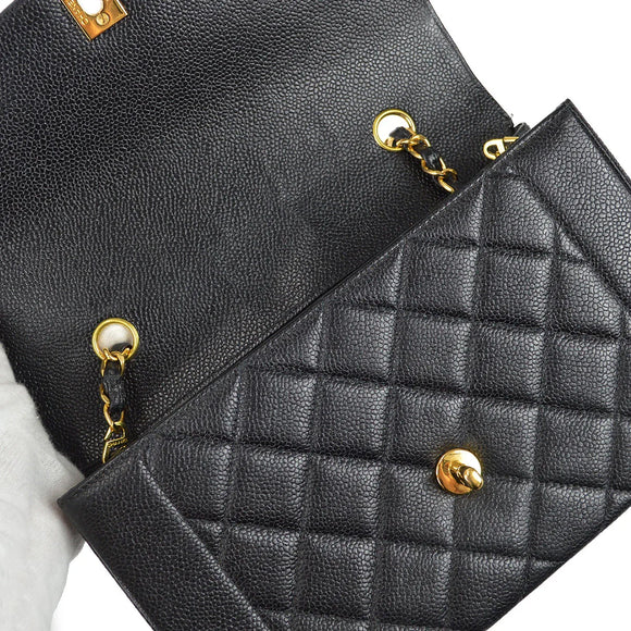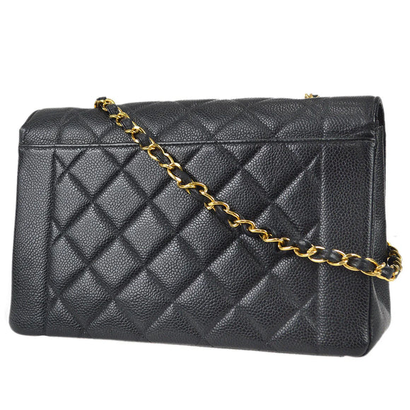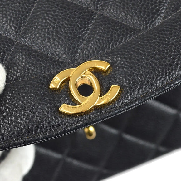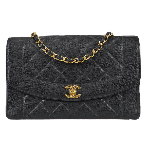 香奈儿中型戴安娜连锁肩袋黑色鱼子酱