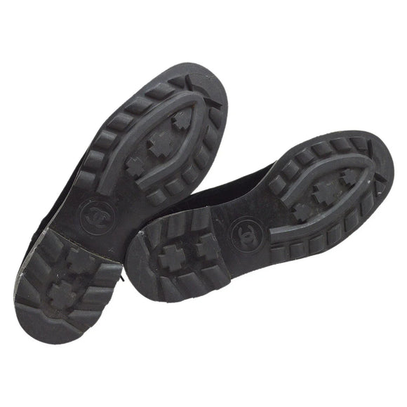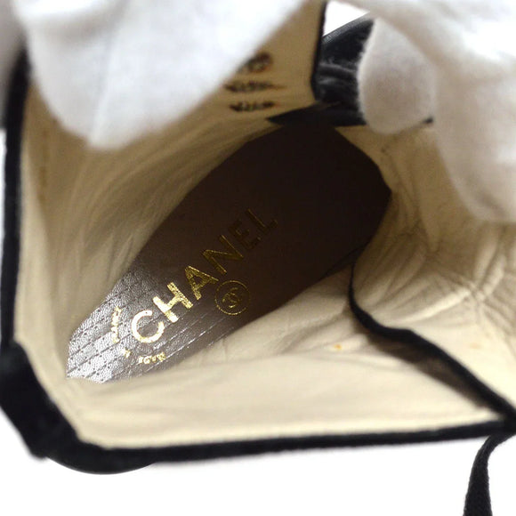 香奈儿黑色天鹅绒拉丝靴鞋#36 1/2
