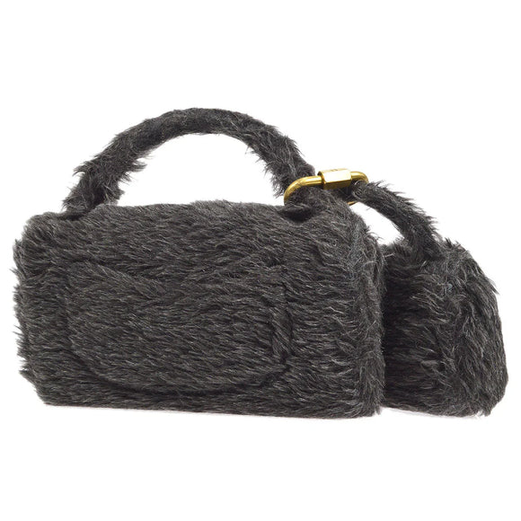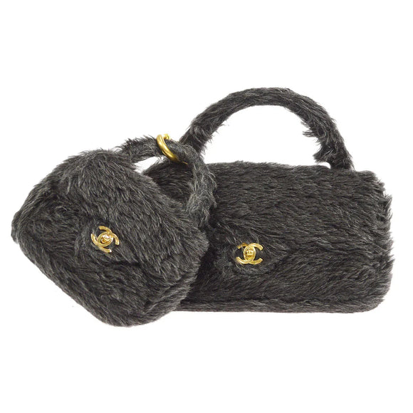香奈儿经典单瓣2合1手袋套黑色毛皮