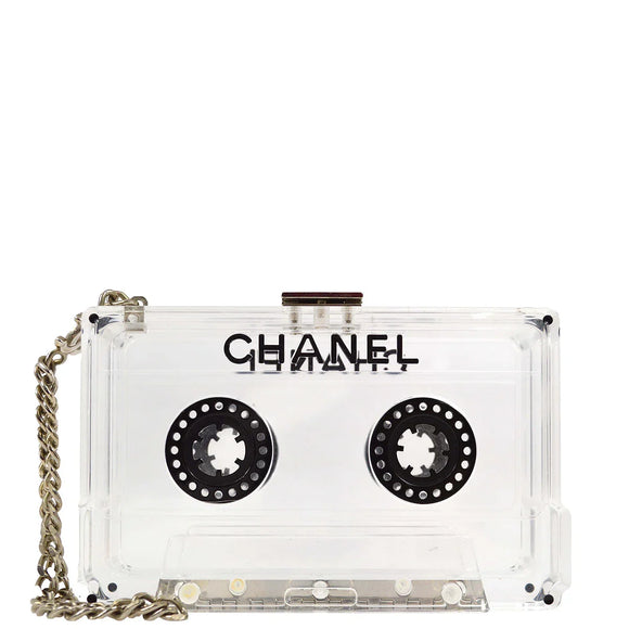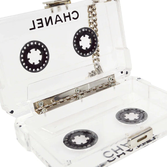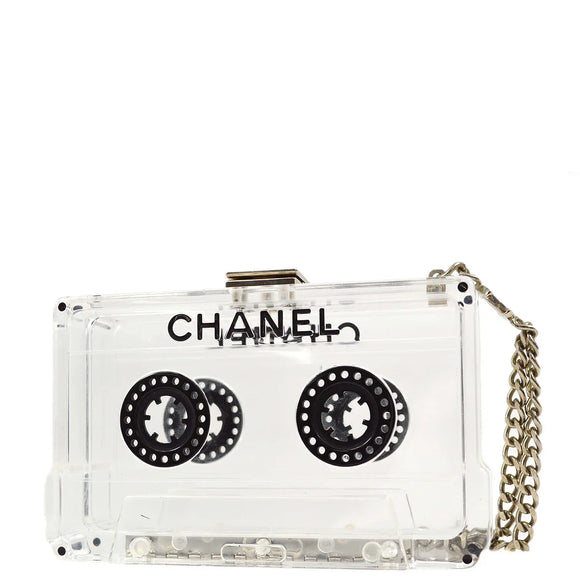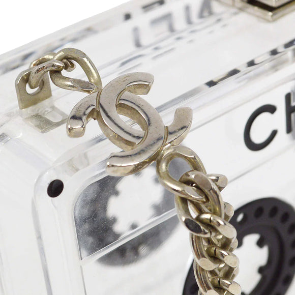 香奈儿盒式胶带链链离合器派对袋透明塑料